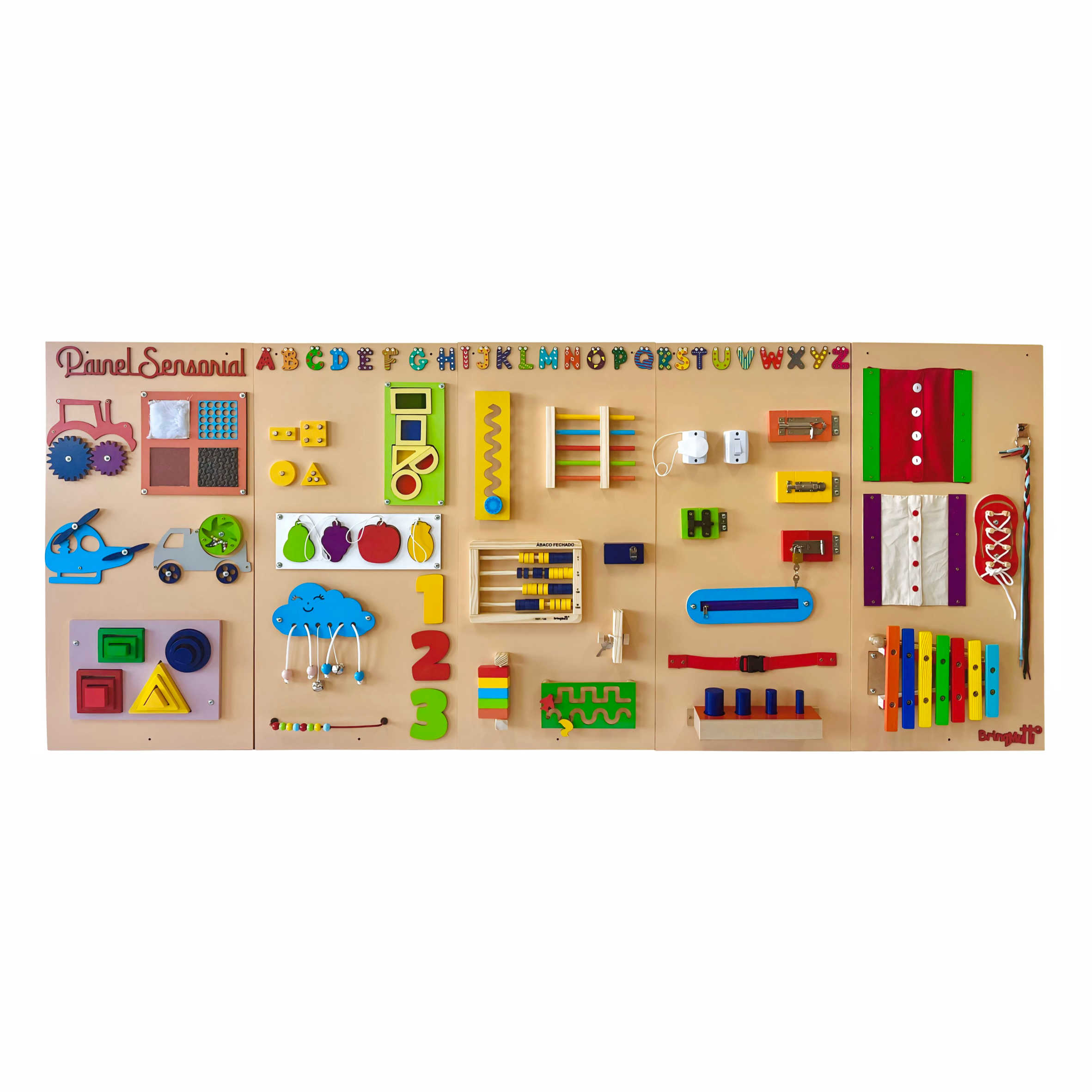 Com atividades variadas, os painéis trabalham desde a alfabetização e matemática até habilidades motoras, cognitivas e sociais, incentivando a criança a aprender brincando.